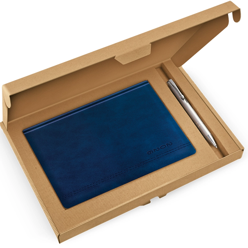 | Zawartość zestawu | kalendarz książkowy dzienny A5, długopis metalowy, opakowanie z tektury czterowarstwowej z ozdobną falą |